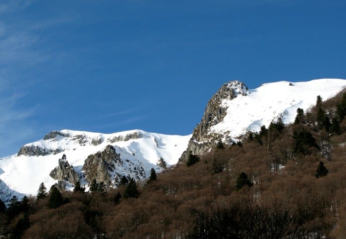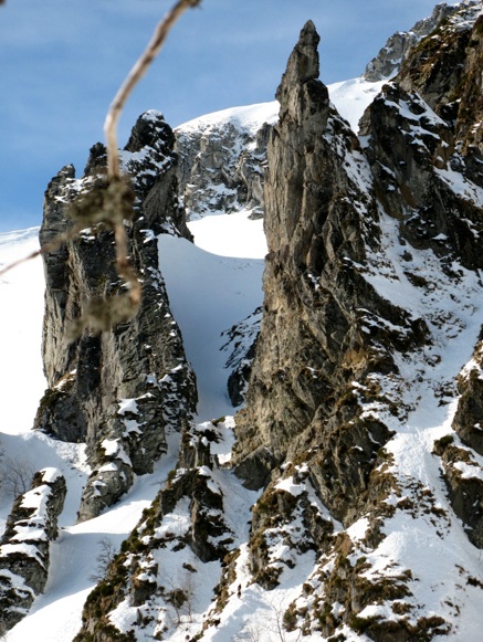 Aiguilles du Diable : remonter le défilé entre les Aiguilles, peu visible d’en bas, continuer jusqu’au Puy de Cacadogne en franchissant au mieux sa barre rocheuse selon l’enneigement.